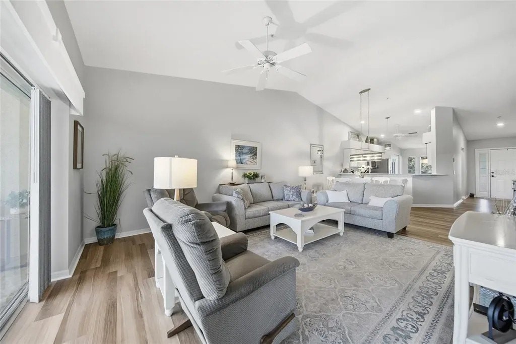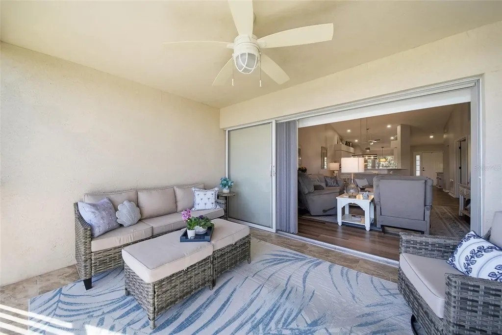 Welcome to effortless Florida living in Heritage Oaks Golf & Country Club! This desirable Abbey floor plan offers 2 bedrooms, 2 bathrooms plus a den, with over 1,600 sq ft of bright, airy living space. As a second-floor end unit, enjoy higher ceilings, extra windows, and abundant natural light throughout. Step onto the spacious screened lanai and take in serene eastern views of the 13th hole and tranquil pond, perfect for morning coffee. Beautifully updated with new flooring, newer HVAC, water heater, and appliances, this residence is move-in ready. Heritage Oaks is a gated, maintenance-free community with 24-hour security and a full golf membership included, featuring an 18-hole championship course, tennis and pickleball courts, fitness center, clubhouse, multiple pools, and an active social calendar. This is more than a home, it's a lifestyle.